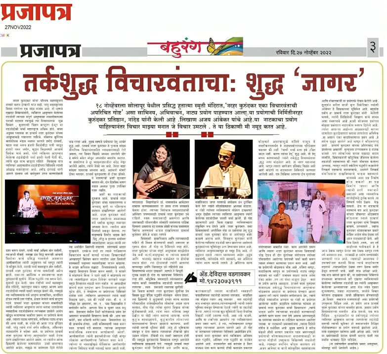 ‘नरहर कुरुंदकर: एका विचारवंताची गोष्ट’ हे केवळ मनोरंजन नाही, तर ते विचारांना नवी दिशा देणारे एक प्रेरणादायी अनुभव आहे.