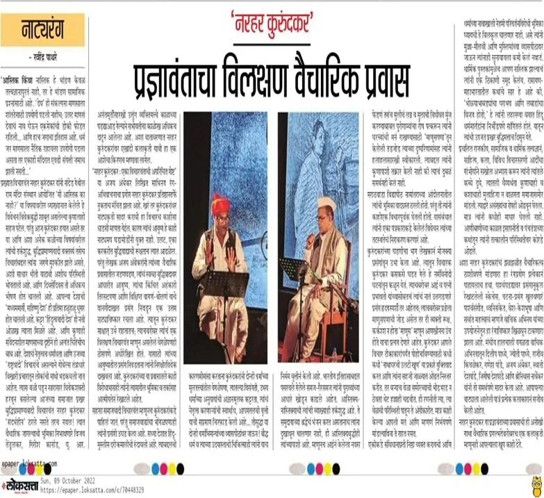सुप्रसिद्ध विचारवंत श्री. नरहर कुरुंदकर यांच्या जीवन-विचारांचे सामर्थ्य आणि त्यांची प्रासंगिकता आजच्या गतिमान जगात किती मोलाची आहे, हे प्रभावीपणे मांडणारा “नरहर कुरुंदकर – एका विचारवंताची अपरिचित गोष्ट” हा एक अनोखा रंगमंचीय प्रयोग आहे. हा कार्यक्रम म्हणजे केवळ नाटक नाही, तर तो एका महान विचारधारेच्या संहितेच्या अभिवाचनाचा एक अभिनव नाट्यप्रयोग आहे, जो थेट रसिकांच्या मनाला भिडतो.